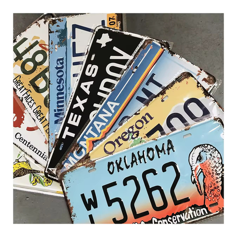 Fabrika özel tasarım kabartmalı Vintage boyutu alüminyum araba numarası plaka dekor plaka dekoratif araba plakaları